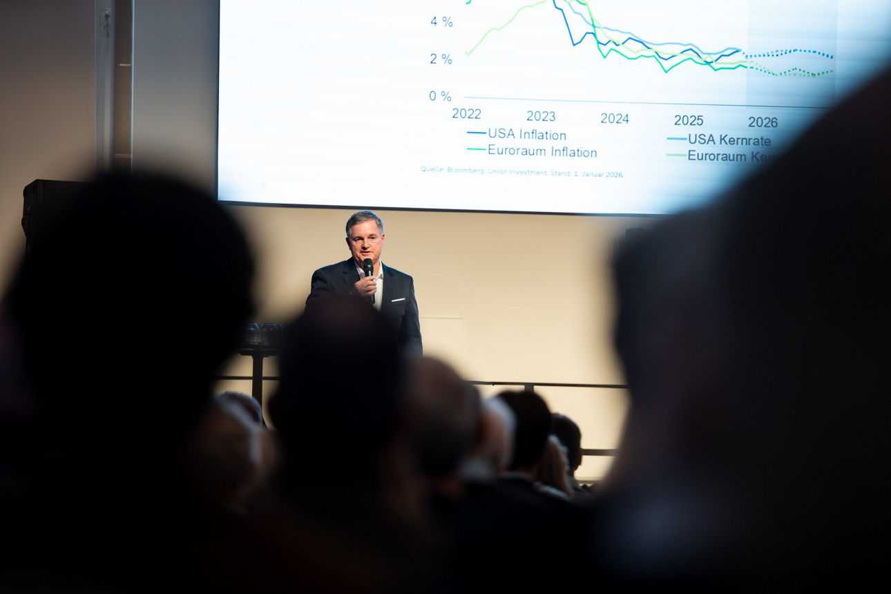 Vorab leitete Volkmar Schmidt, Vertriebsdirektor Vermögensmanagement der Union Investment, in den Abend ein, zeigte Anlagechancen in einer veränderten Welt auf und ging auf eine gute Vermögenstrukturierung ein.